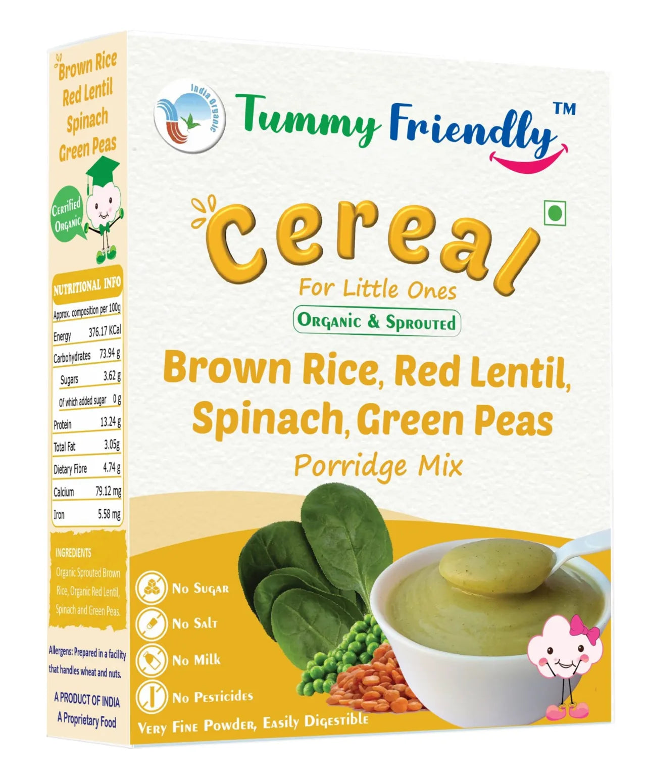 Tummy Friendly Brown Rice, Red Lentil, Spinach, Green Peas Porridge is a wholesome and nutritious meal designed to support digestive health while providing a rich source of fiber, protein, and essential vitamins. This porridge combines the goodness of brown rice, red lentils, spinach, and green peas for a hearty and tummy-friendly meal that's gentle on the stomach and perfect for any time of the day.